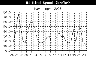 | Velocità del vento | 9.7 Km/h | - | - | 46.7 Km/h | 4:55 |